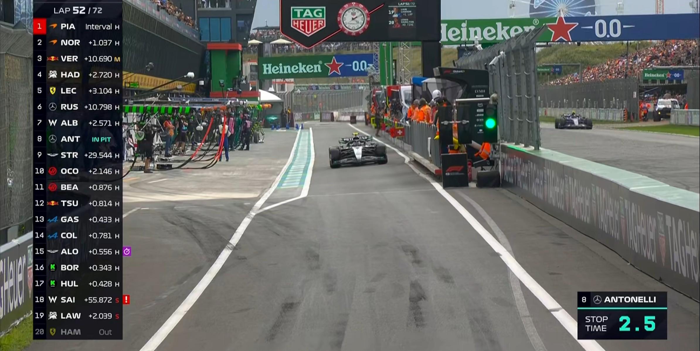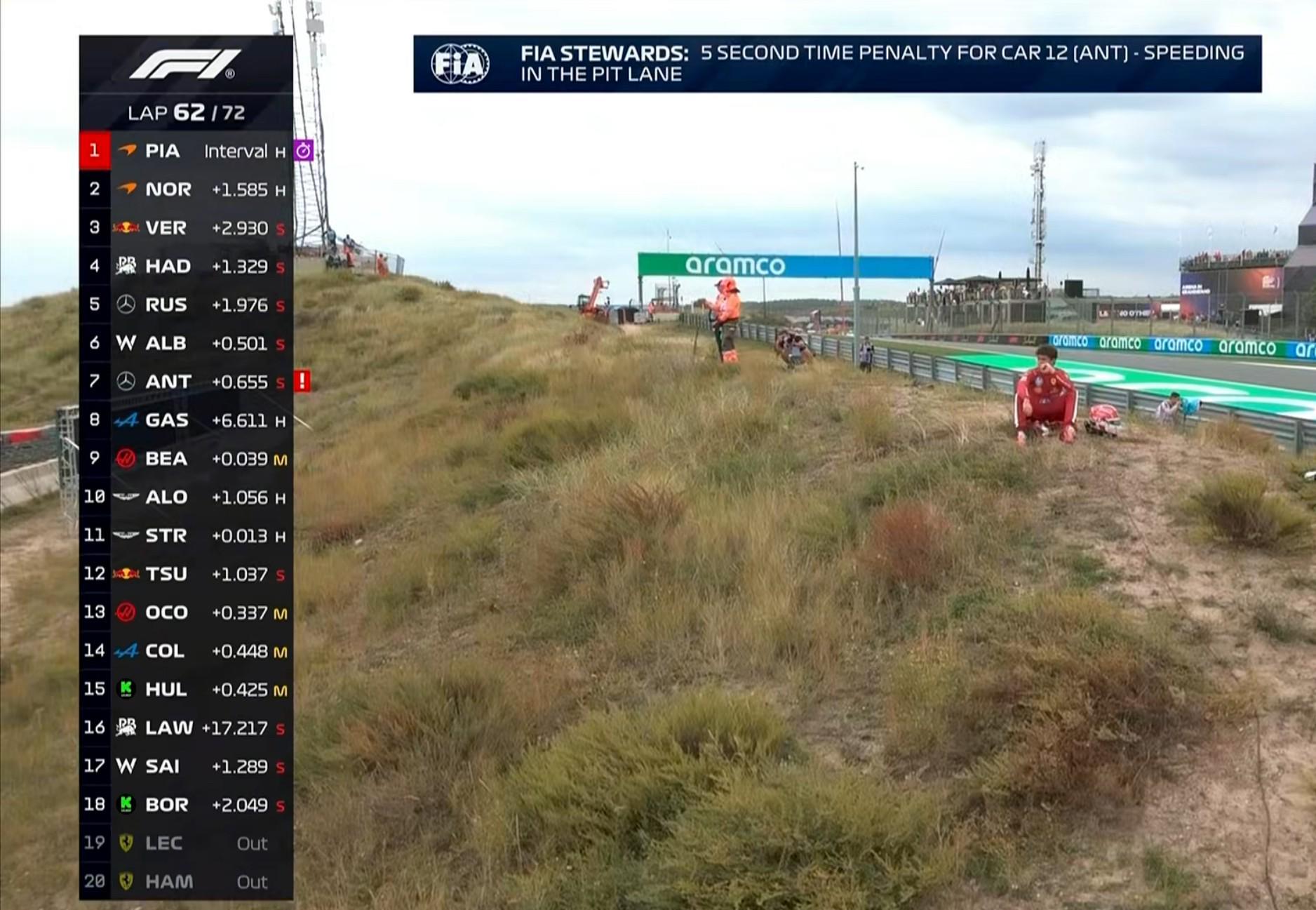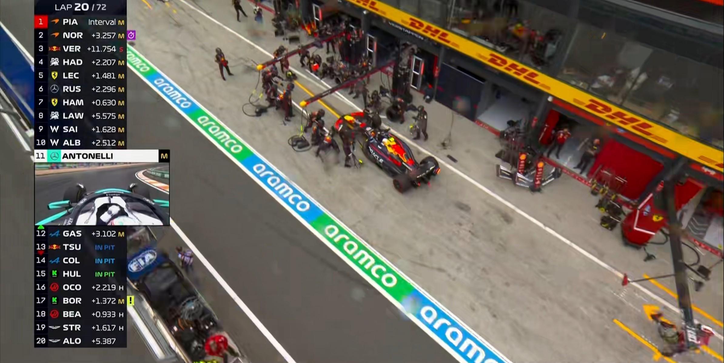 第62圈:安东内利因维修区超速被罚5秒,他目前身背15秒罚时!