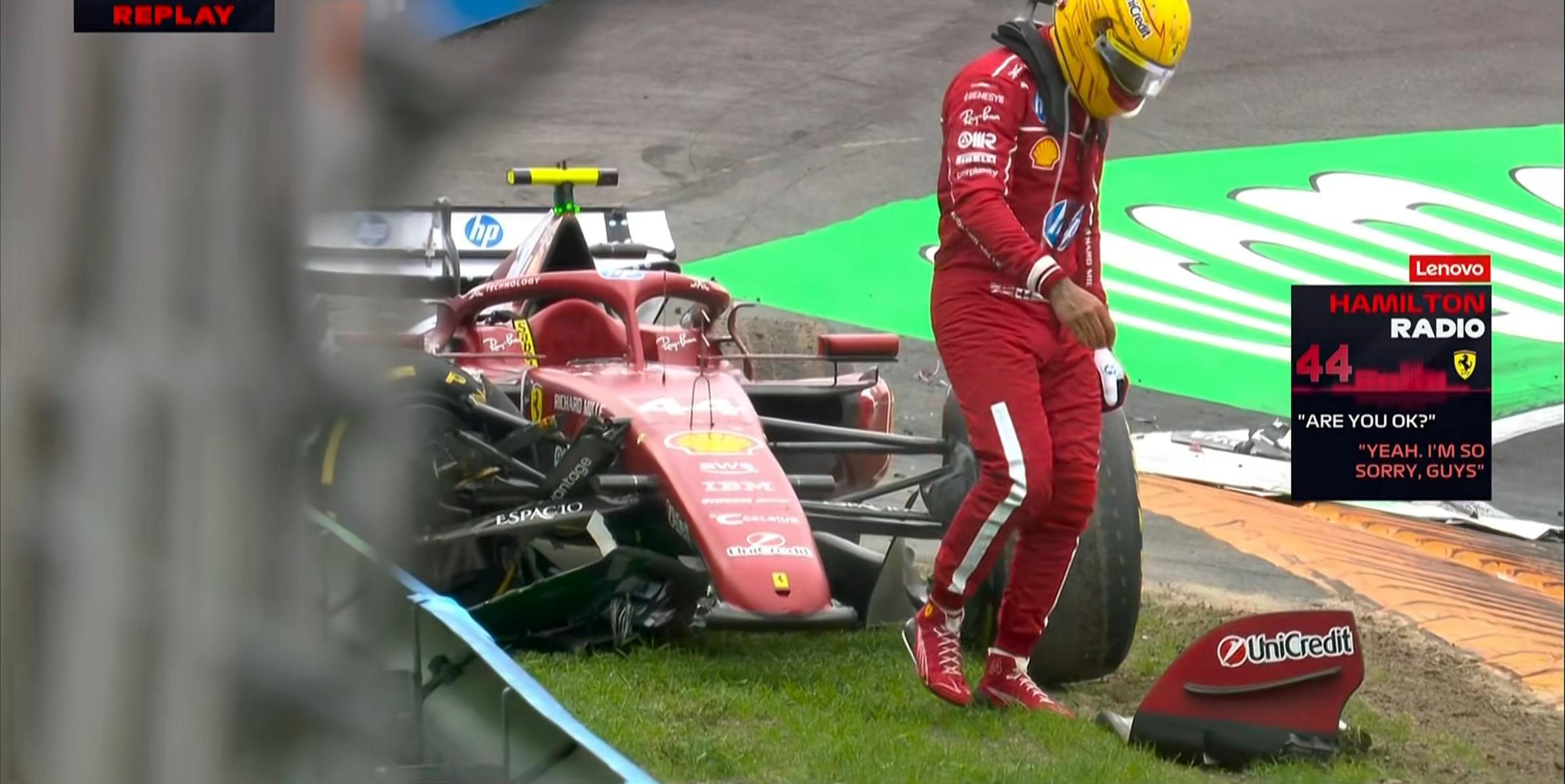 汉密尔顿向车队致歉,回放显示3号弯的小雨对汉密尔顿刹车点的判断出现了影响;