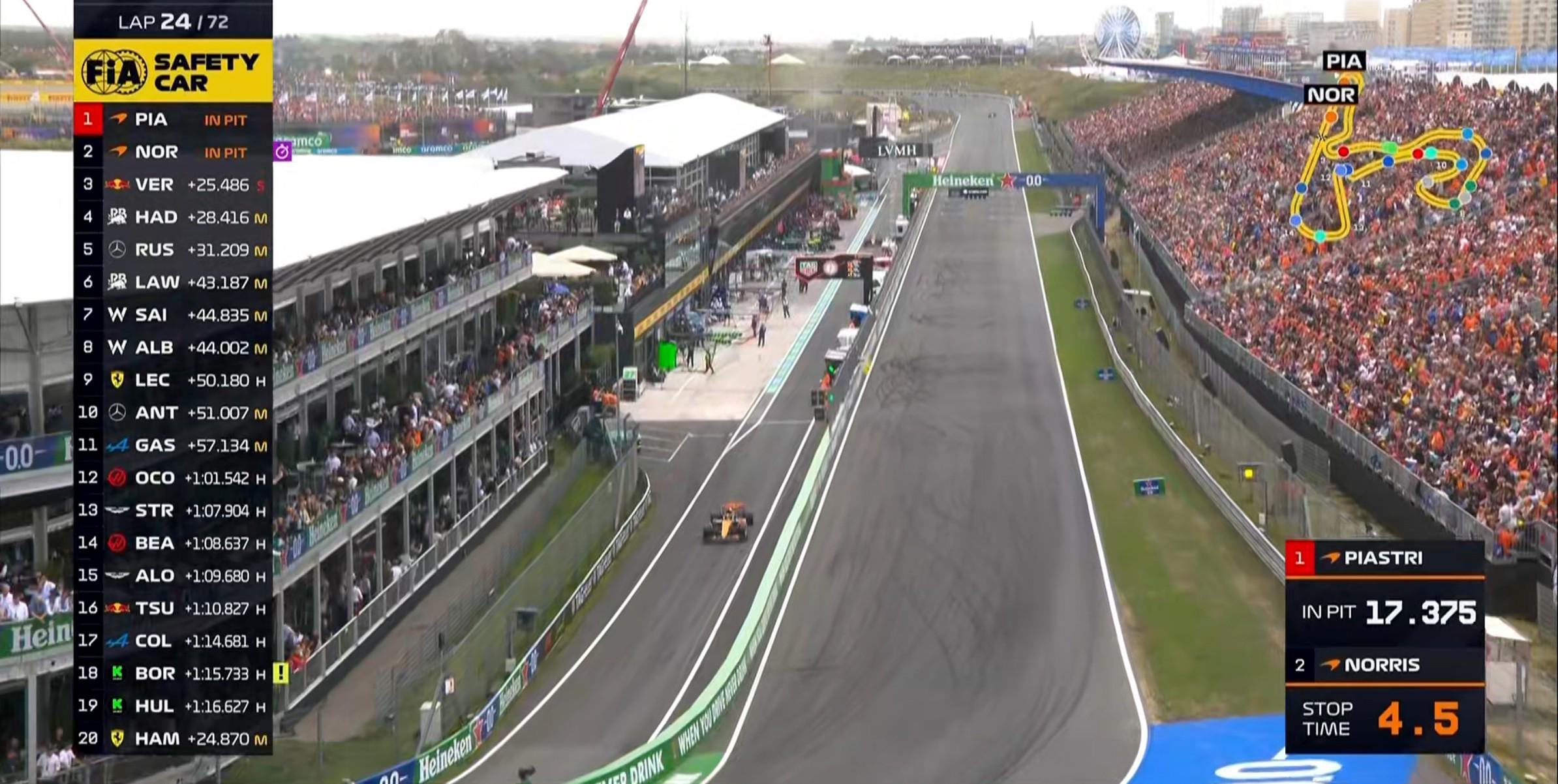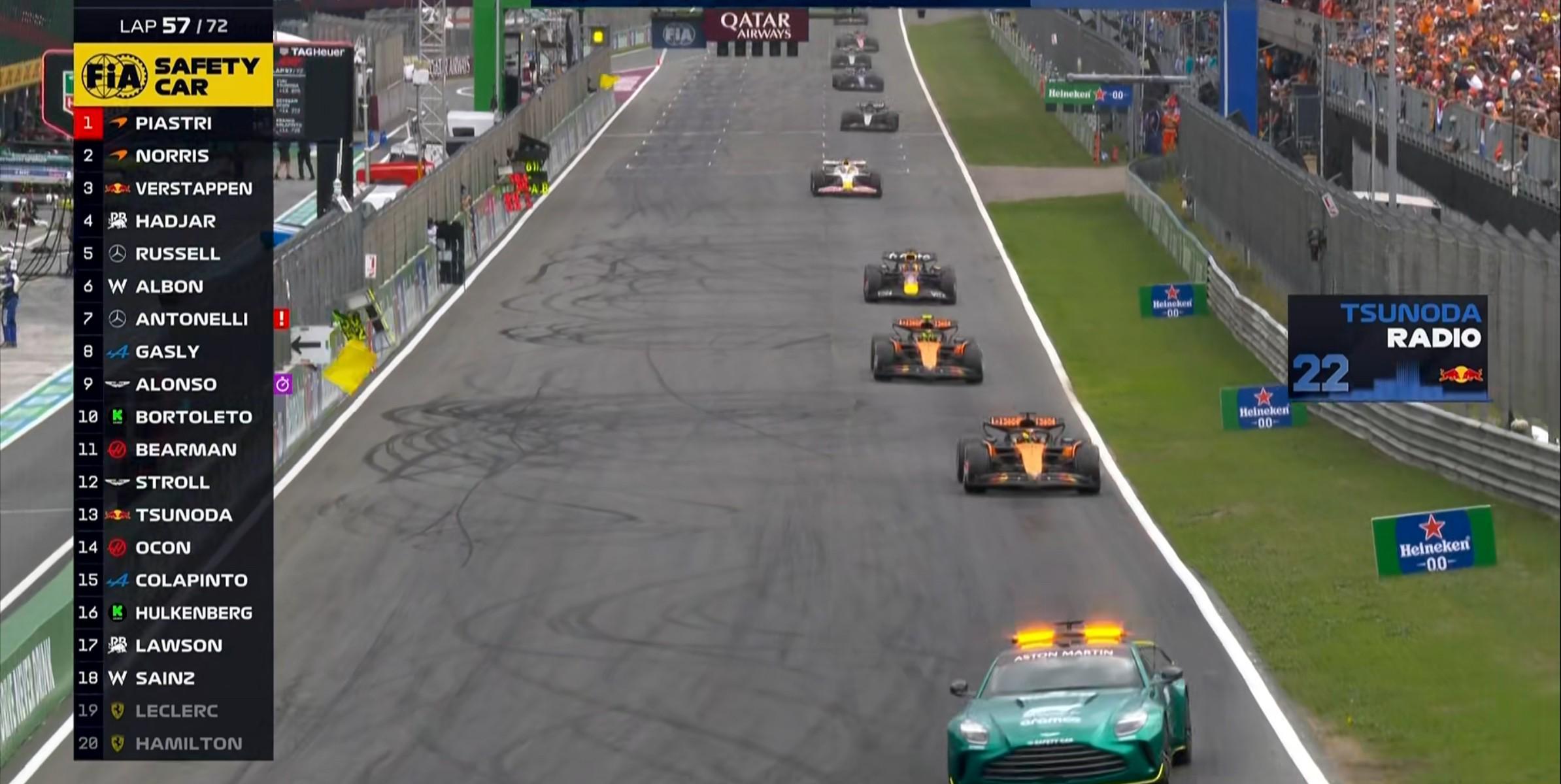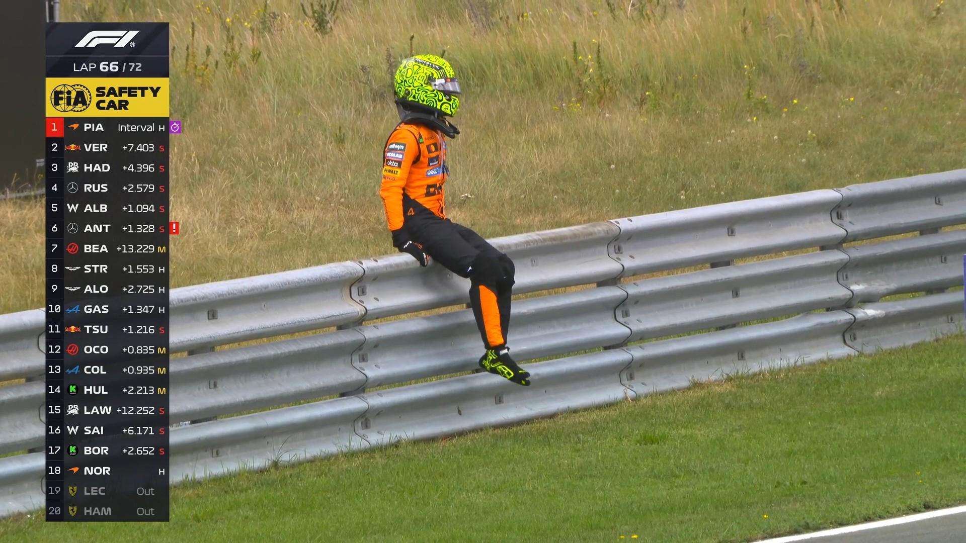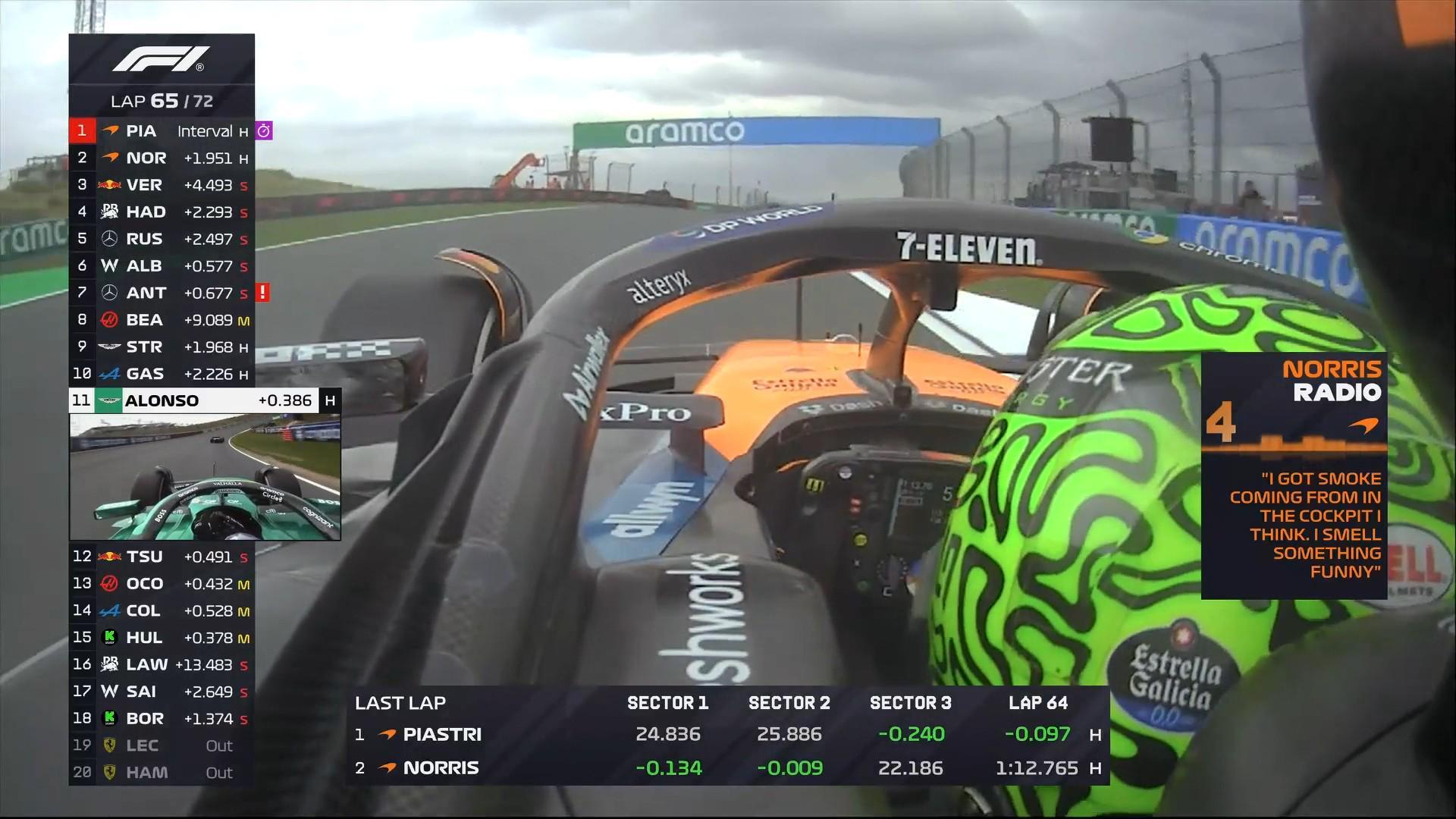 第65圈:诺里斯的赛车引擎爆缸,安全车第三次出动!
