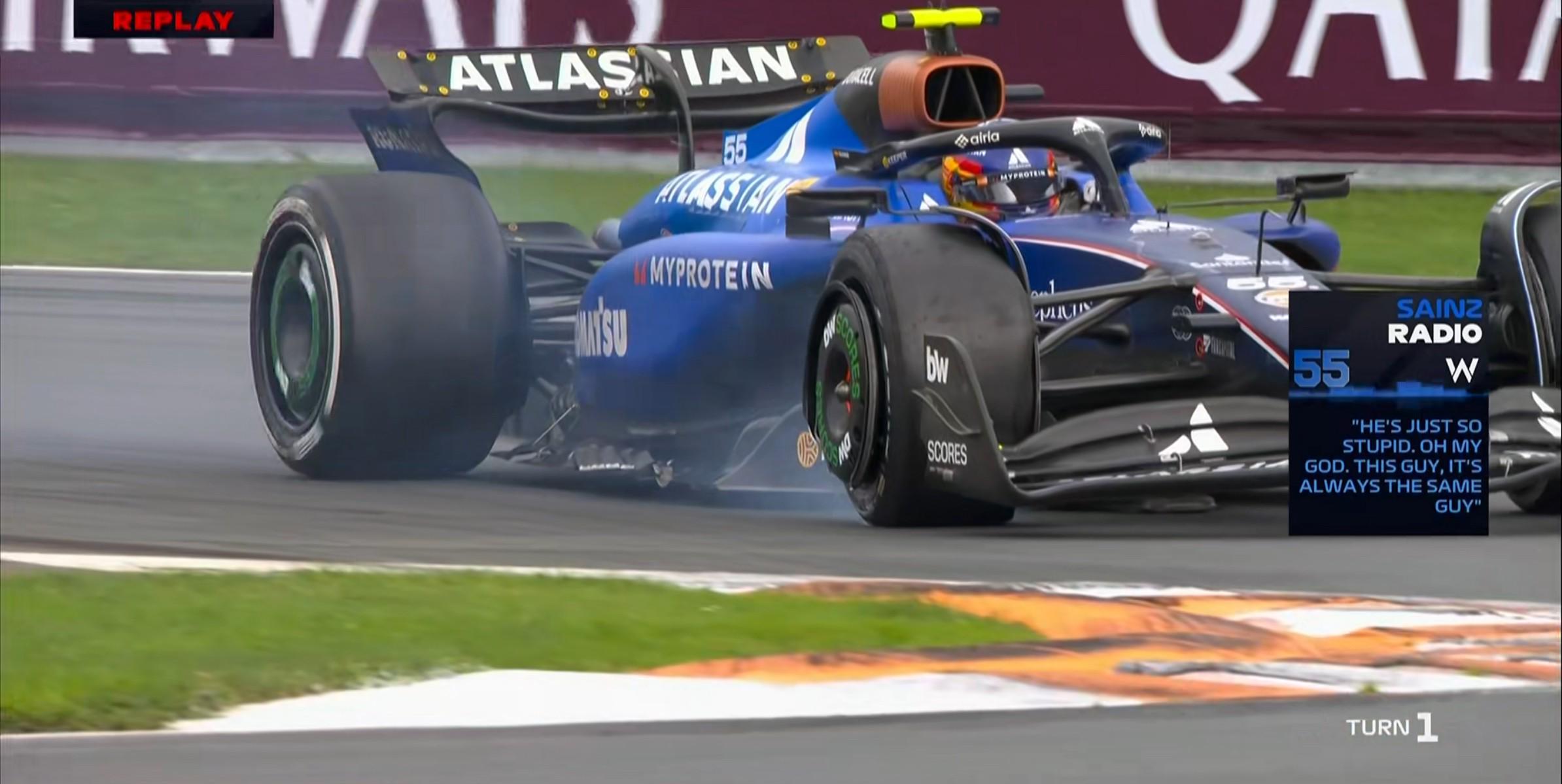 回放显示安东内利在3号弯走内线“鱼雷”勒克莱尔,后者认为安东内利的这次尝试是非常鲁莽且不应该的!