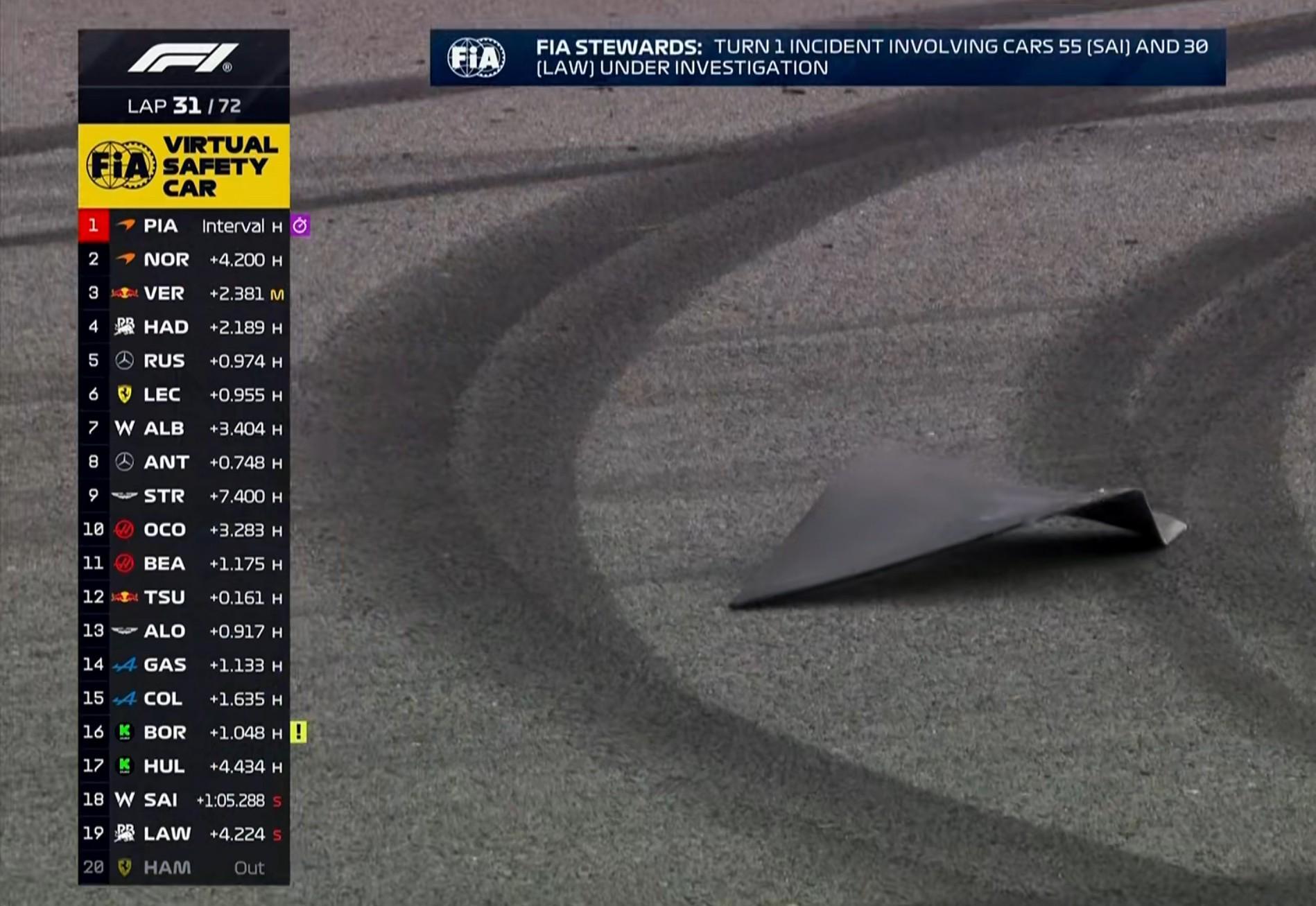 第31圈:虚拟安全车出动,需要马修上赛道清理碎片;