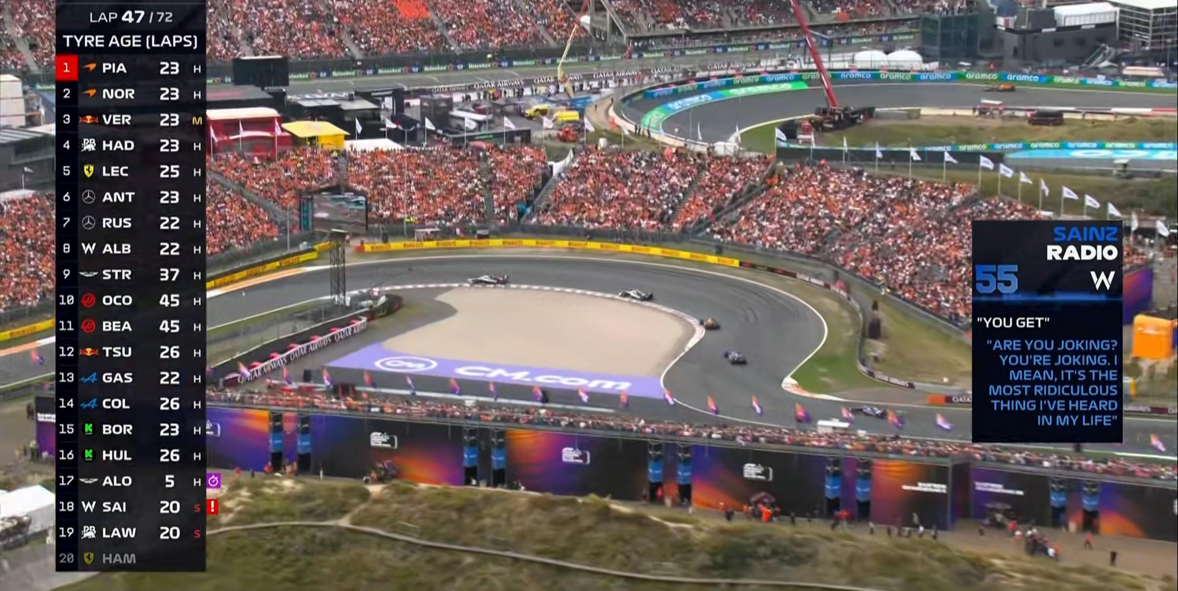 第47圈:车队告知塞恩斯被罚时10秒,后者表示这是他自己这辈子听过最离谱的事情!