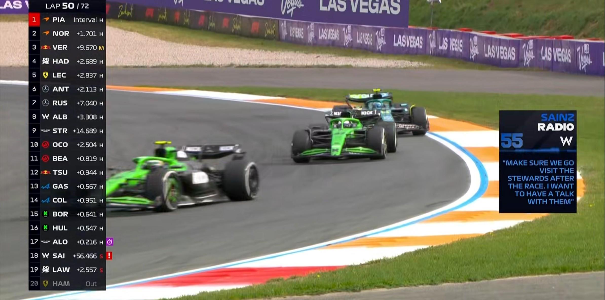 第50圈:塞恩斯表示比赛结束后自己会去和赛会干事聊一聊,阐明自己的观点;