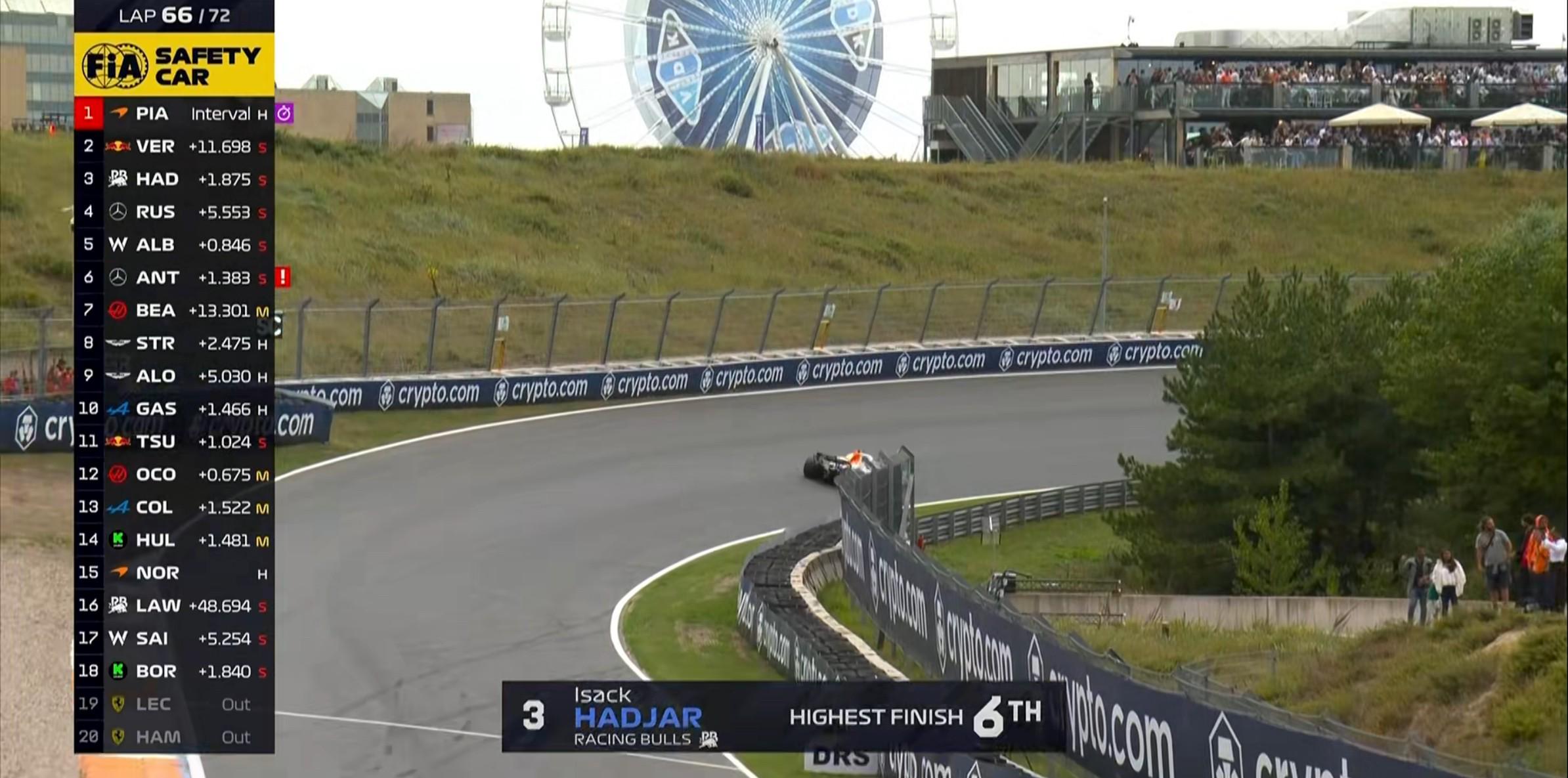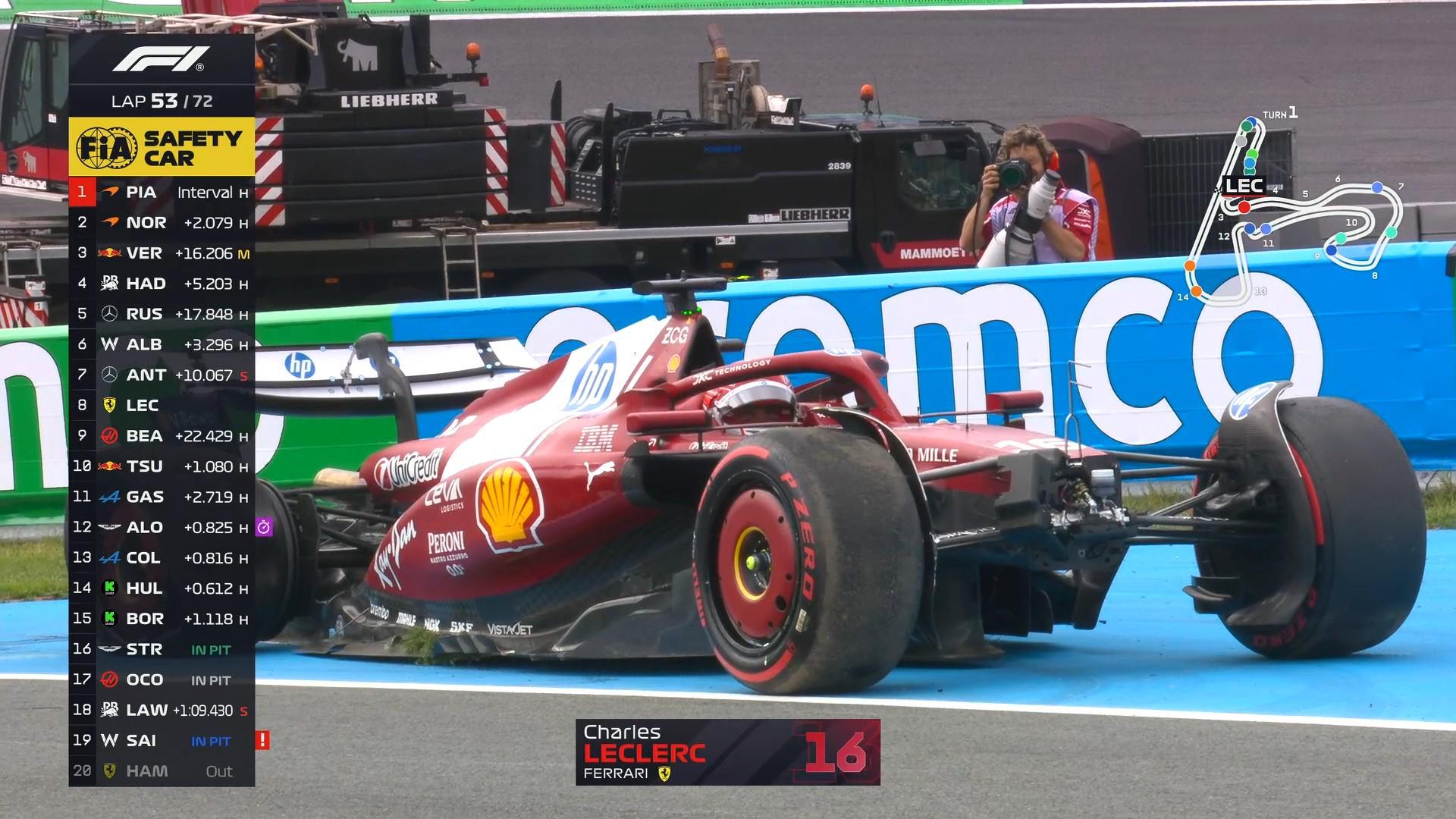 倒霉!安全车出动,而勒克莱尔刚刚完成一停,他也将因此丢失位置!