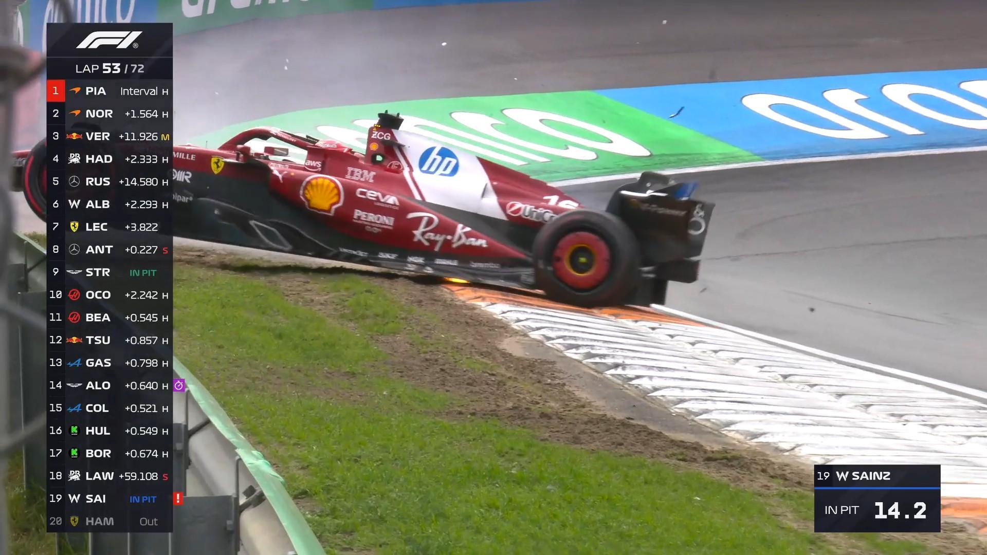 第53圈:回应二停的勒克莱尔与安东内利发生碰撞,法拉利双退!!!