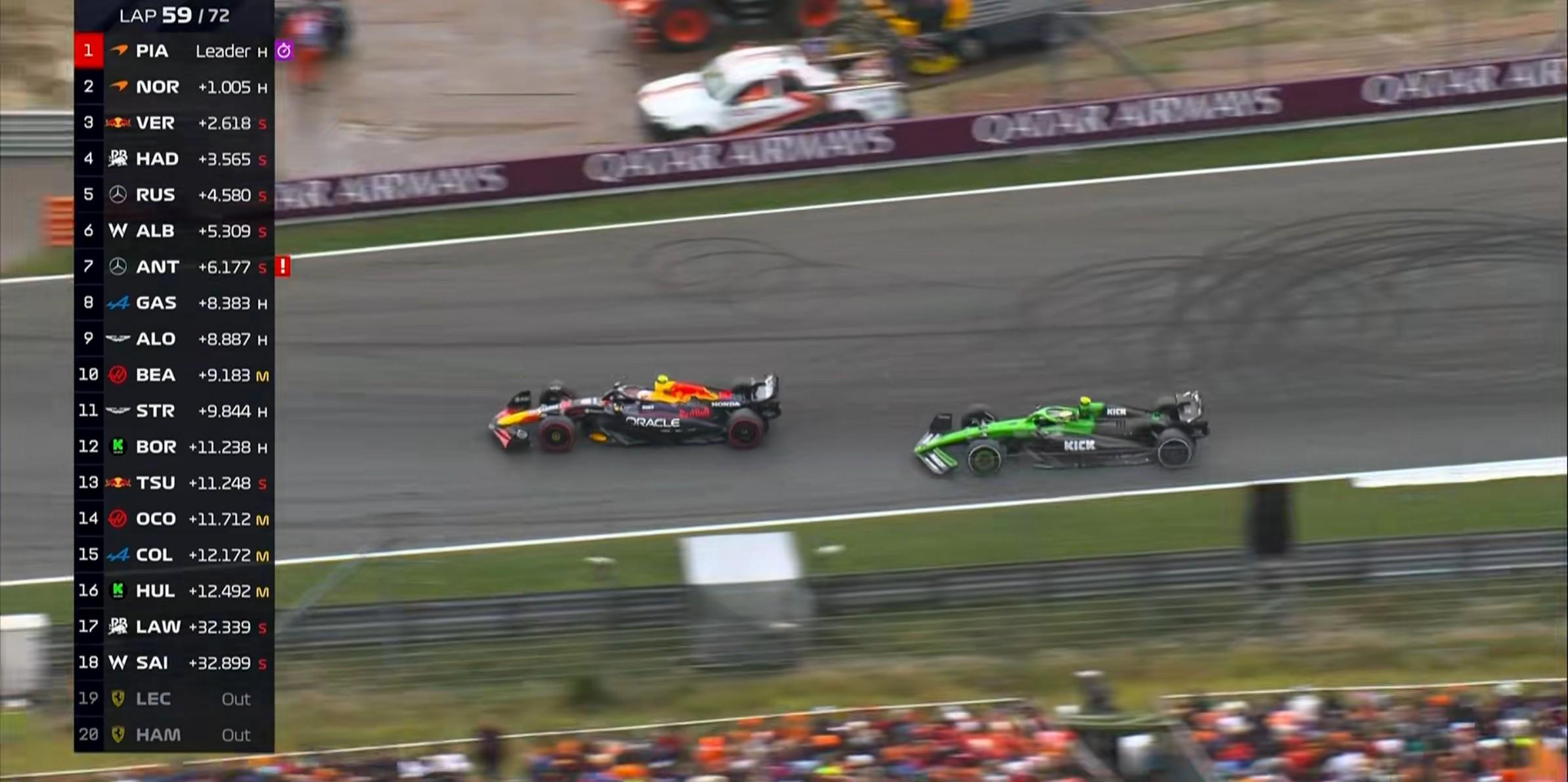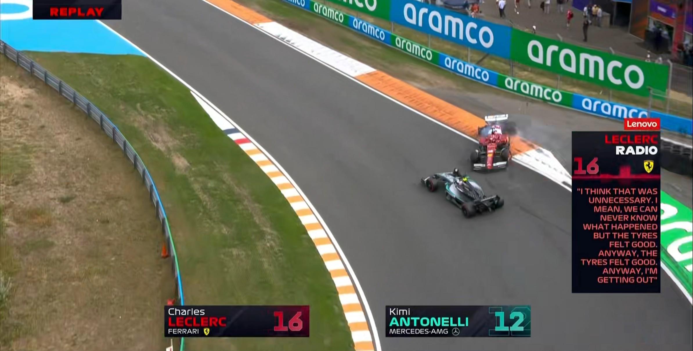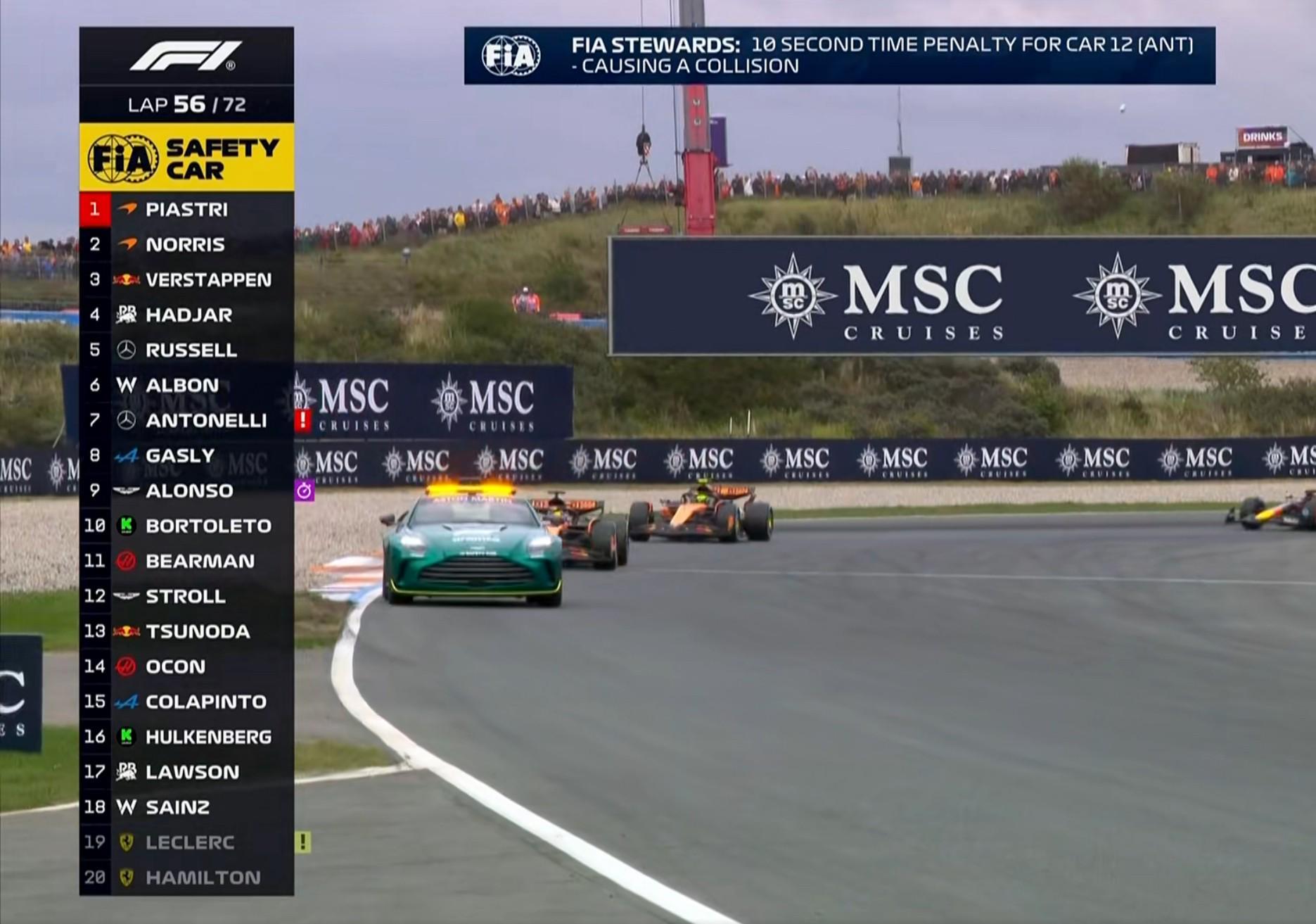 第56圈:安东内利因与勒克莱尔的碰撞被罚时10秒!