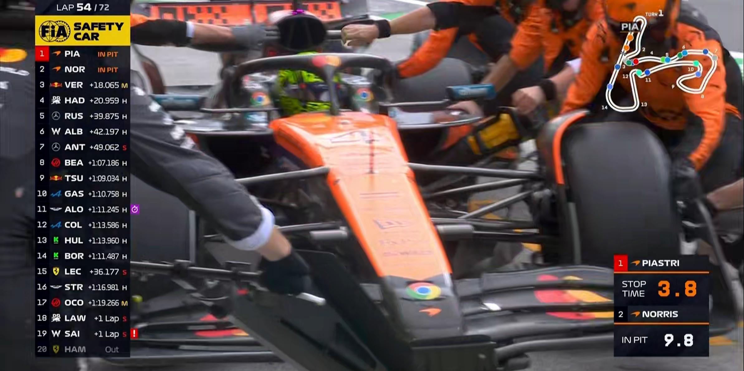 第54圈:安全车出动!多位车手选择进站完成二停;