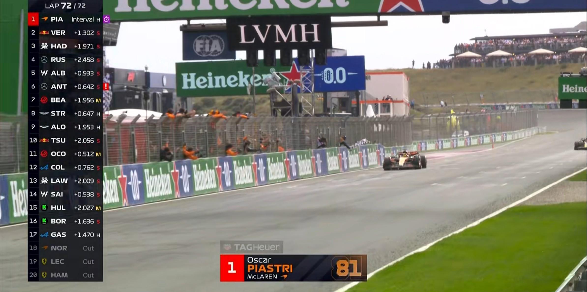 冲线!皮亚斯特里全场的表现非常稳定,成功拿下pole to win!!!